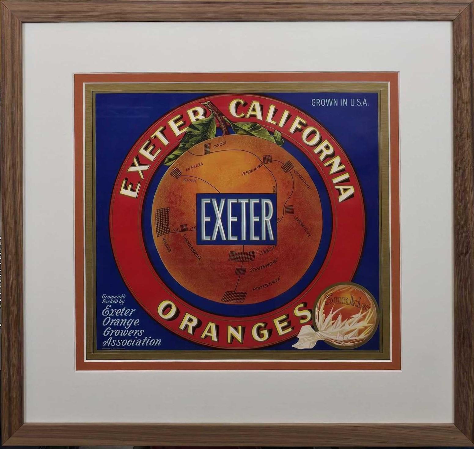 Exeter California Sunkist Orange Fruit Label c. 1920