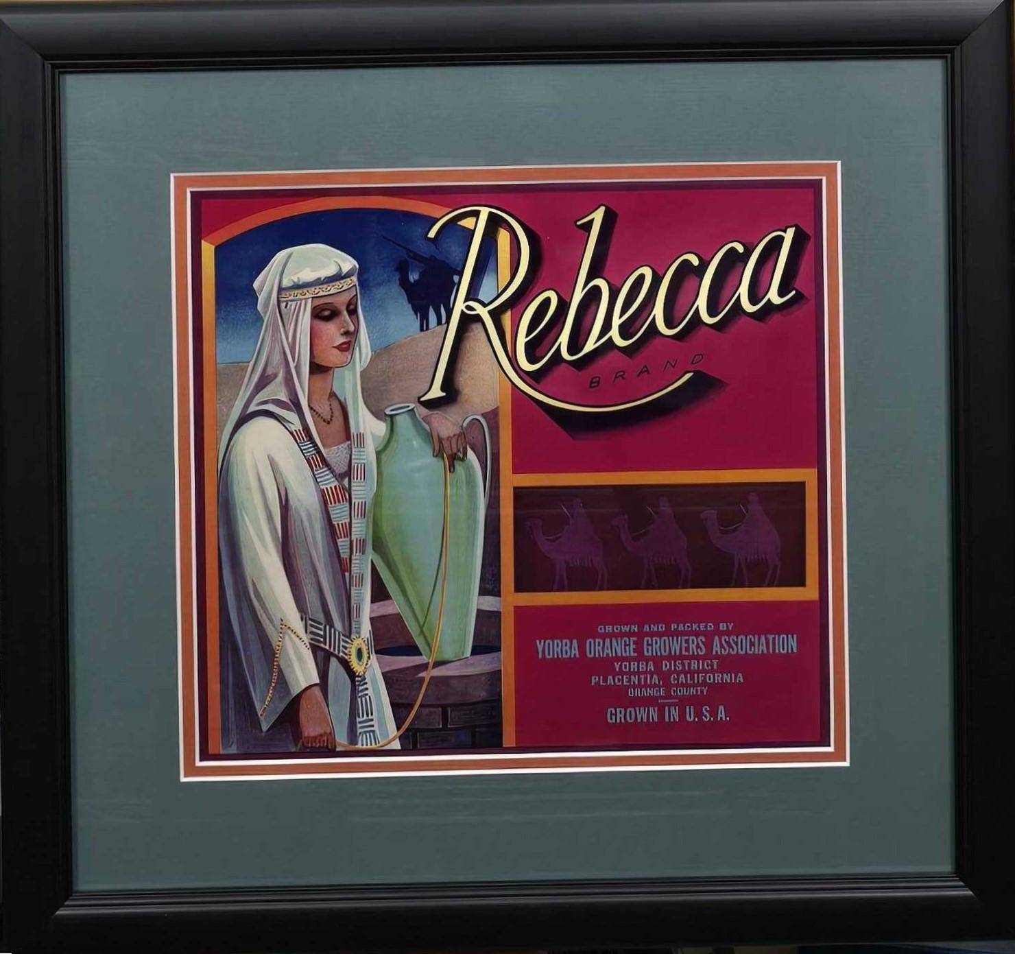 - Origin, design, and significance of the Rebecca Brand fruit crate label (era, artist, symbolism, collectible value).